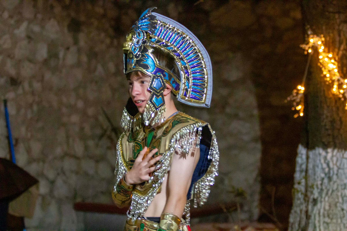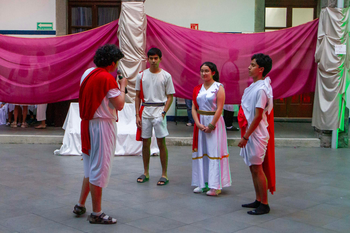 La velada inició con una puesta en escena dedicada a los padres de familia, inspirada en la majestuosidad y simbolismo de los dioses griegos, envolviendo al público en un ambiente lleno de historia, fuerza y fantasía. Pero lo mejor estaba por comenzar: los asistentes fueron guiados en un recorrido íntimo por distintos espacios del campus, donde siete escenarios temáticos cobraron vida de forma simultánea.
