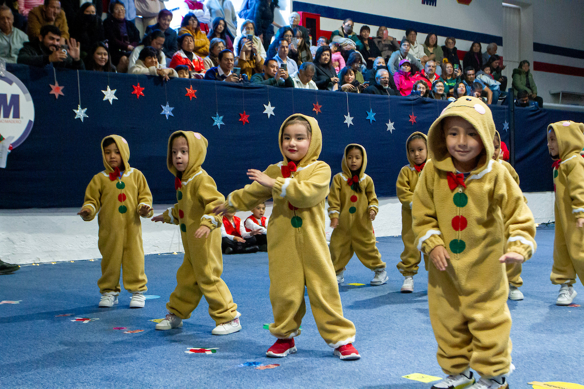 Como parte de las actividades navideñas, este jueves 18 de diciembre, alumnos de preescolar del Instituto Mexicano Madero, Plantel Centro, participaron en una celebración matutina en la que presentaron bailes alusivos a la temporada decembrina, acompañados por padres de familia, comunidad escolar y autoridades académicas.