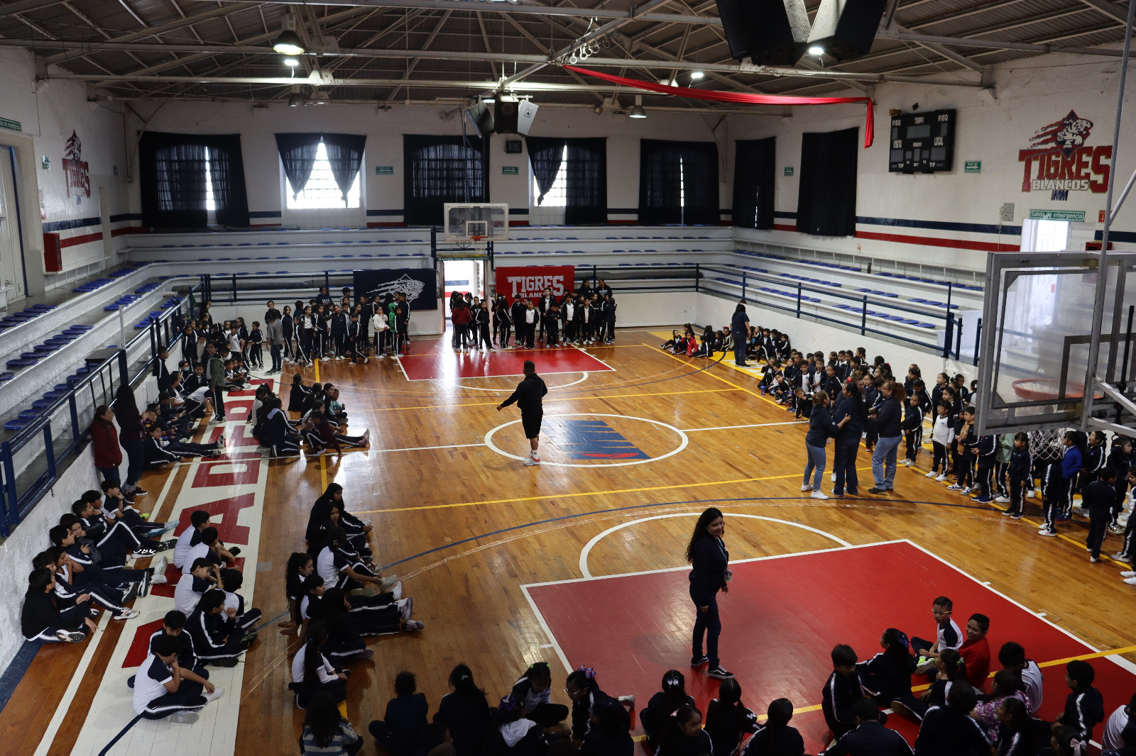 La activación tuvo lugar en el gimnasio del plantel, donde los alumnos participaron en una sesión dinámica que incluyó ejercicios de movilidad, estiramientos, juegos recreativos y dinámicas grupales. Cada movimiento estuvo diseñado para despertar su energía, mejorar la concentración y fomentar el bienestar integral, demostrando que unos minutos de actividad física pueden transformar el estado de ánimo y la disposición para aprender.
