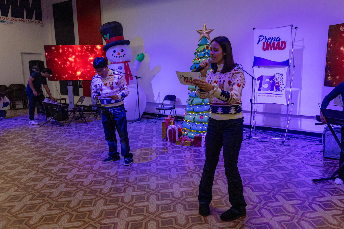 Este lunes 15 de diciembre, la Prepa UMAD, plantel Centro, se llenó de luz, emoción y espíritu navideño con la presentación de villancicos interpretados por estudiantes de distintos semestres, como parte de las actividades de cierre del ciclo escolar. El salón de usos múltiples se convirtió en un espacio de encuentro donde la música fue el puente para compartir alegría, reflexión y unión.